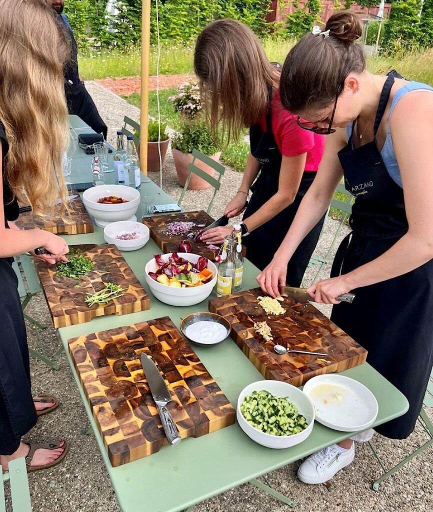 Der Abend klang aus mit einem Kochworkshop, angeleitet von Imran, einem Koch, den wir immer wieder gern empfehlen. Gekocht wurde draußen, gegessen auch: BBQ im Garten bei Sommerwetter. Entspannt, stimmungsvoll, leicht.