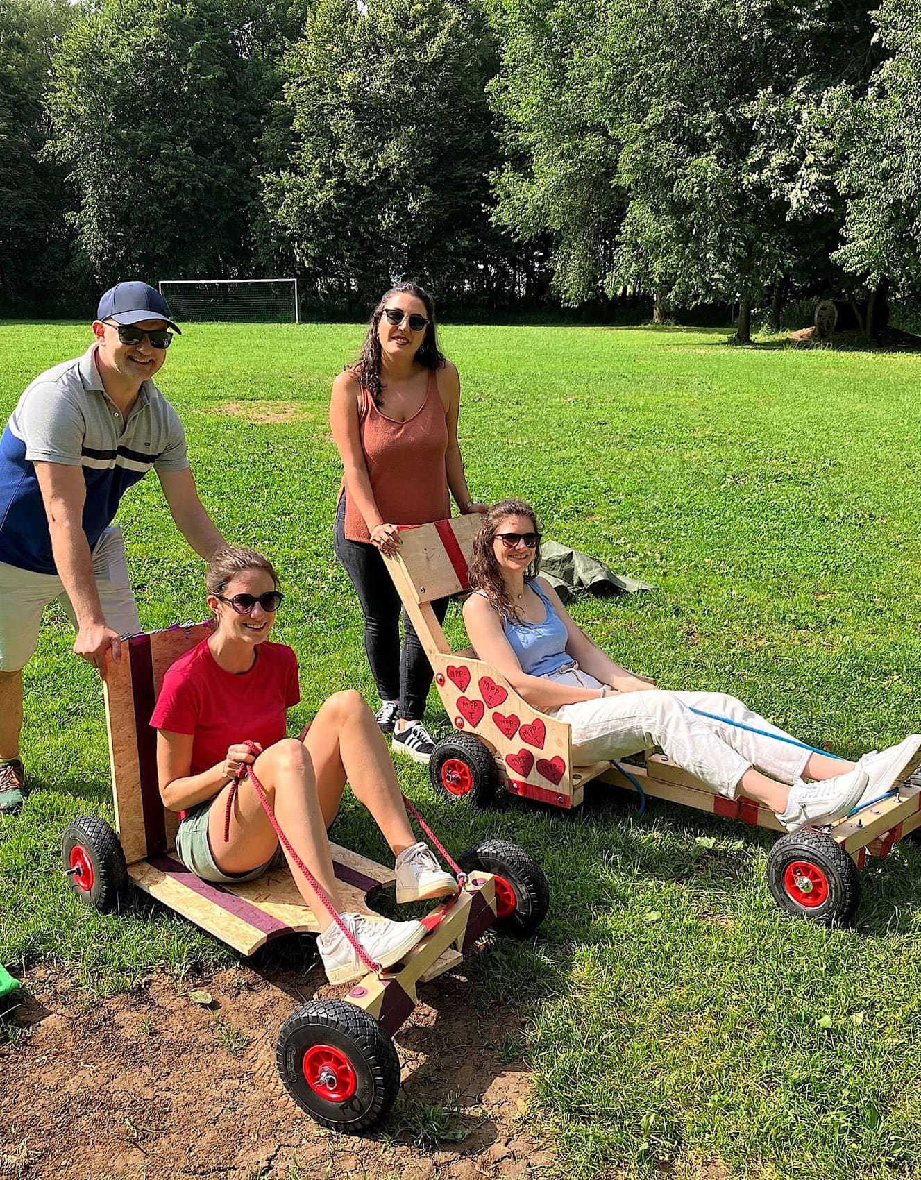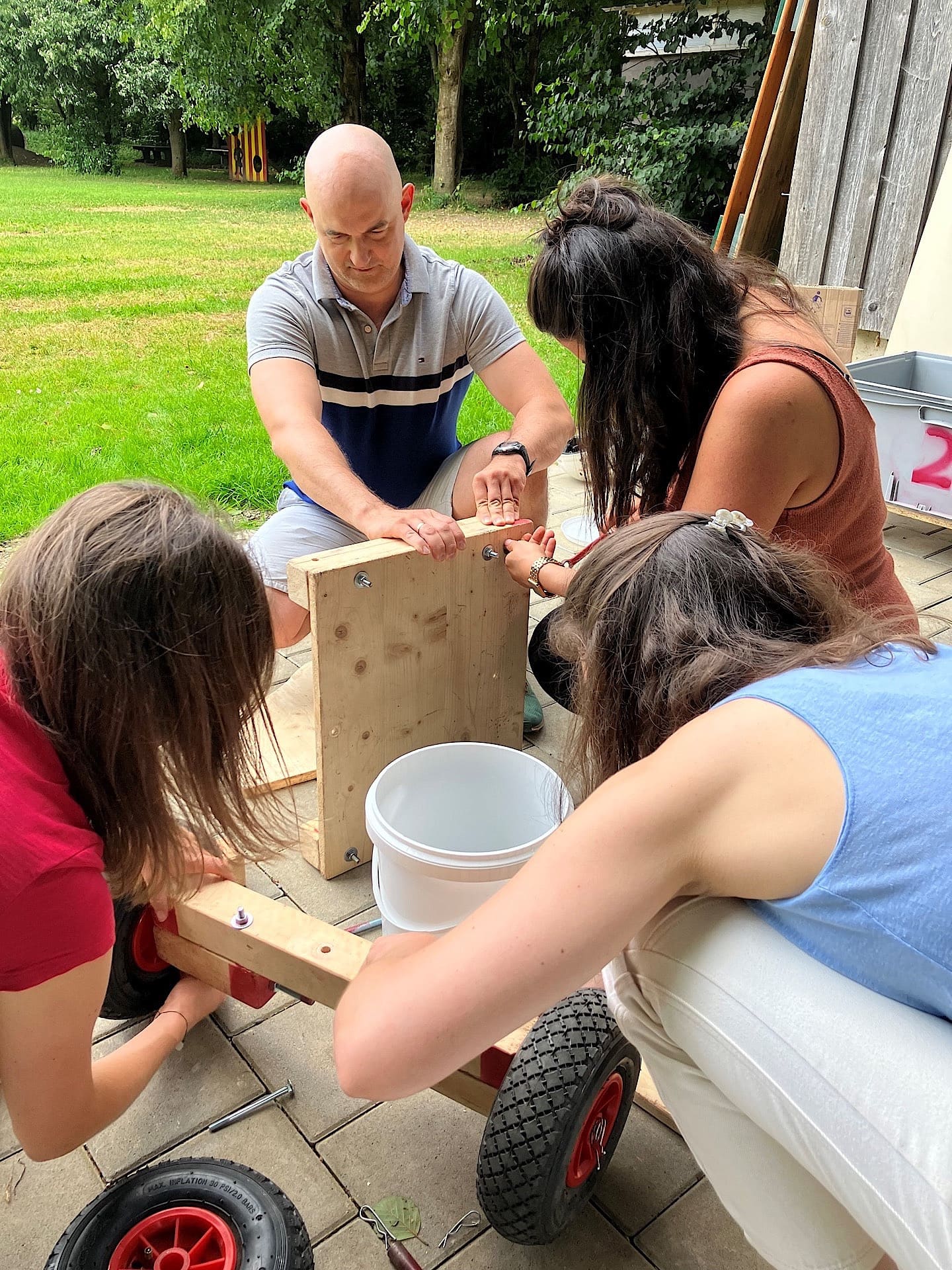 Am Nachmittag: Ausflug zur Umweltstation Legau. Dort wartete ein kreativer Impuls auf das Team: Seifenkistenbau als Teamevent. Es wurde gelacht, geschraubt, entworfen – und vor allem: im Team gearbeitet, ganz ohne PowerPoint.